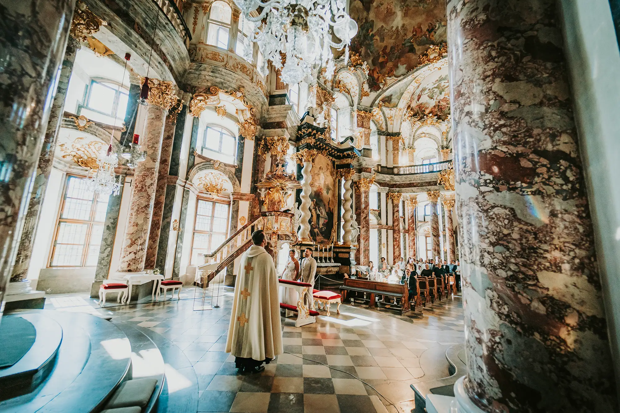 „Hochzeit in der Residenz Würzburg, 6 Stunden, einfach ganz natürliche Fotos“ – das war das einzige Briefing, dass ich für diesen Auftrag erhalten habe. Denn meine Fotobegleitung sollte ein Geschenk sein, eine Überraschung, also „top secret“. Auch wenn ich keine weiteren Informationen und daher natürlich kein Vorgesspräch mit dem Brautpaar hatte, wusste ich, dass es nicht nur gut, sondern was ganz Besonderes wird. Und als ich Ida und Wolfgang in ihrem schicken Look an der Residenz zum ersten Mal gegenüber stand, wusste ich: meine Intuition hat mich nicht getäuscht. Und es war eine rundum gelungene Hochzeit. Auch wenn wir uns noch nie gesehen haben, hat die Chemie sofort gestimmt. Es hat uns allen einfach sehr viel Spaß gemacht – und das sieht man den Fotos auch an. Ein toller und verheißungsvoller Start in die Ehe!